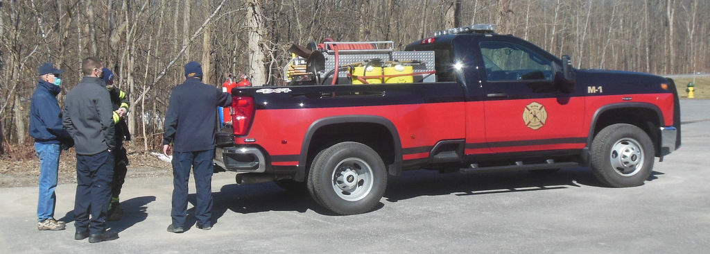 Despite the recent wet weather and the NYS Burn Ban, there is a rash of brush fires locally. The Belgium Cold Springs Fire District’s new Brush Truck (M1) is ready to assist our firefighters tackling these fires. This Chevrolet Silverado 3500HD turbo diesel V8 is equipped with dual rear wheels as well as 4-wheel drive to get into tough spots. It is equipped with a variety of tools as well as a 200-gallon tank of water with a 100′ booster line. This is the first piece of apparatus that uses the new color scheme of black over red.